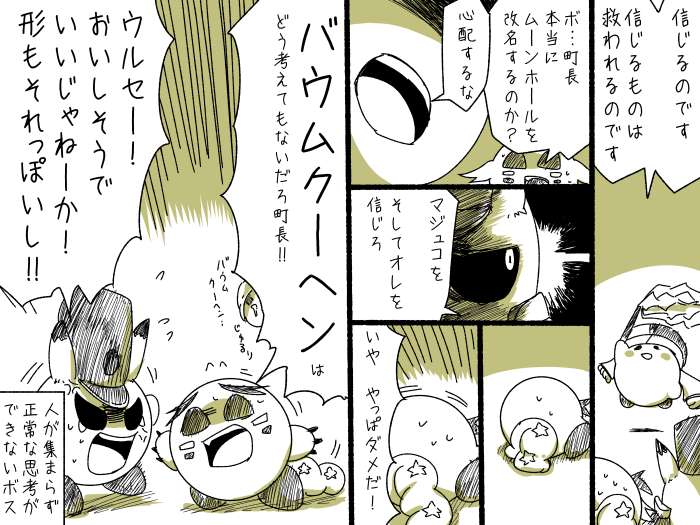 (注釈:第一期サイトでは、この漫画の掲載後しばらくの間、各土地・人物紹介の「ムーンホール」の表記が「バウムクーヘン」になっていました。じゅるり。)