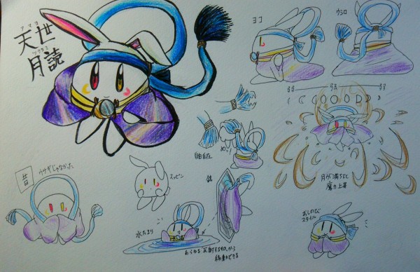 月見鏡 お腹のところの月の鏡。魔力を高めたり、日中に行動するための媒体。大切なものだがよく壊す。壊れると消えて、本殿の御霊代にリスポーンする。