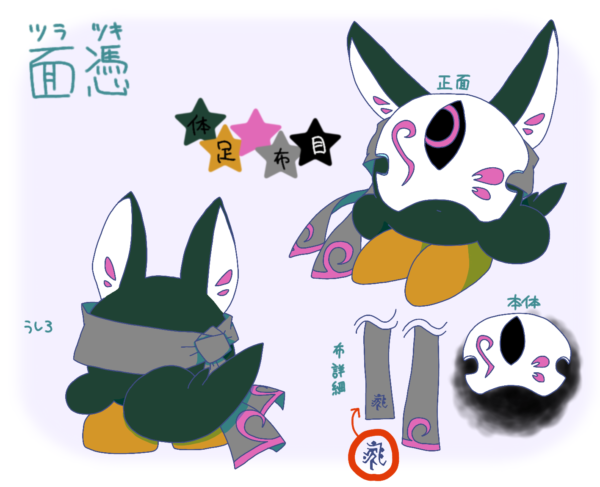 面の名は面憑だとされているが本来の名は封印が長かった為面も忘れており、それを思い出す為に人を襲い記憶などを食べ、本来の名を探している。