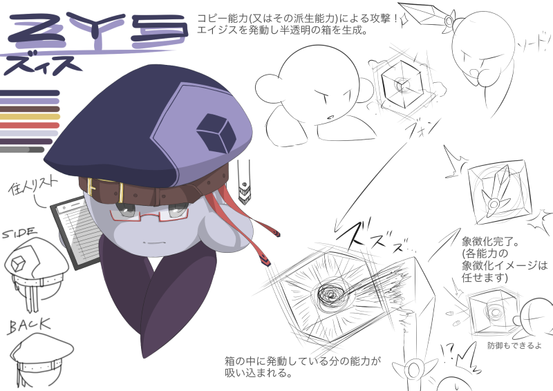 ・アイテム化された能力のイメージ(帽子だとか武器だとかその他もろもろ)はお任せします。ご自由にどうぞ。