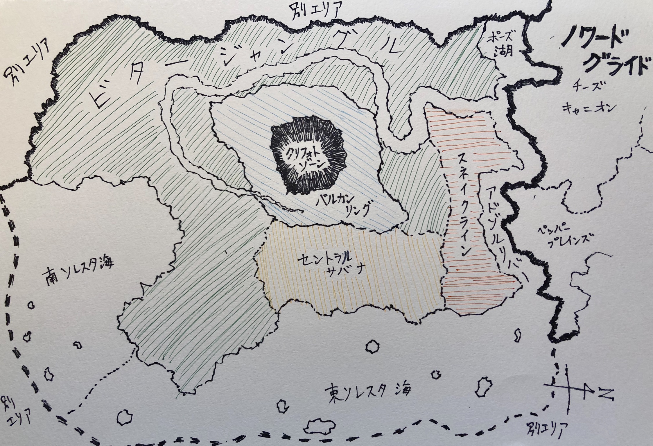 ・第二区:中部。河川が近い第二区東部は文明に栄えていた。降雨量はビタージャングル内で平均的で、セントラルサバナより多い。